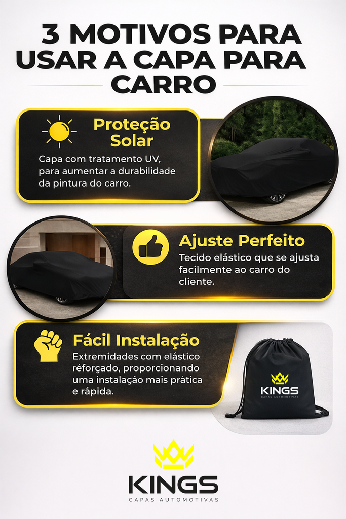 - Capa com encaixe perfeito, sob medida exata e específica para o modelo do seu veiculo;